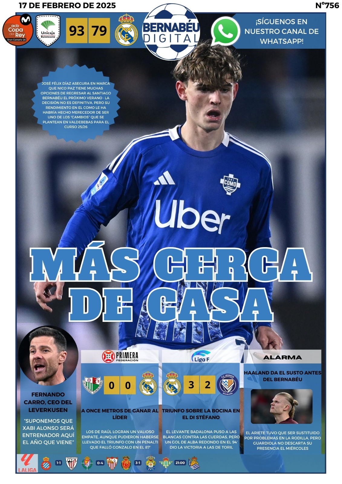 En nuestra edición de este lunes 17 de febrero de 2025, en Bernabéu Digital hemos decidido abrir portada con el posible regreso de Nico Paz al Real Madrid este verano, una opción que está ganando mucha fuerza según ha informado el diario Marca en las últimas horas.