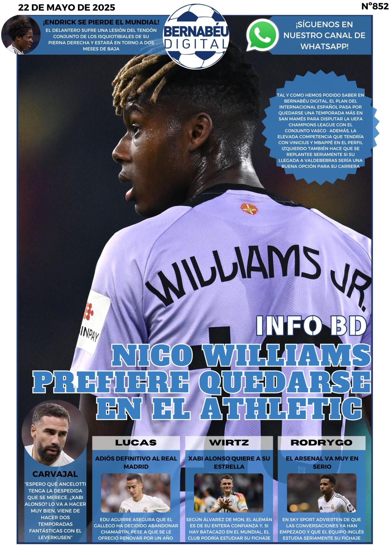 La portada de hoy de Bernabéu Digital destaca la información que les hemos ofrecido en exclusiva acerca de la respuesta de Nico Williams al interés del Real Madrid.