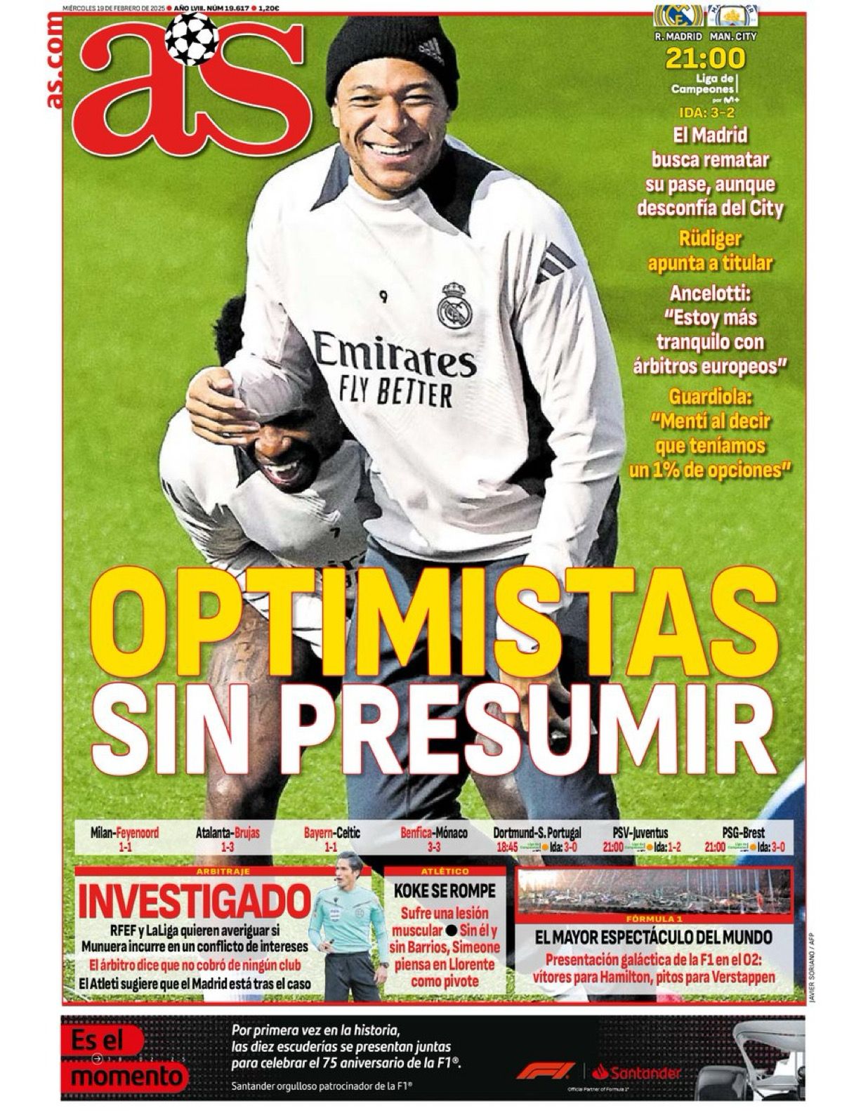 "Optimistas sin presumir": el Real Madrid - City, en la portada de AS