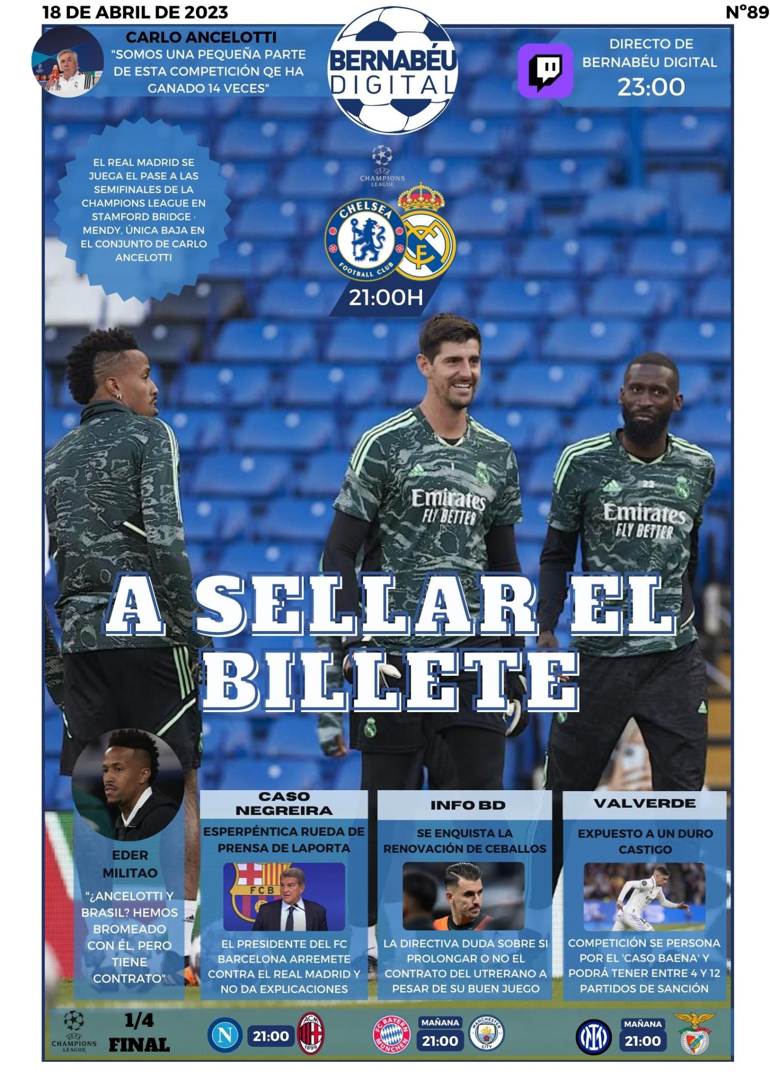 En la portada de este martes, desde Bernabéu Digital hemos querido destacar el partido de Champions League en Stamford Bridge entre el Chelsea y el Real Madrid. Además, también hacemos referencia a las palabras de Joan Laporta, el castigo a Fede Valverde y la Info BD sobre Ceballos.