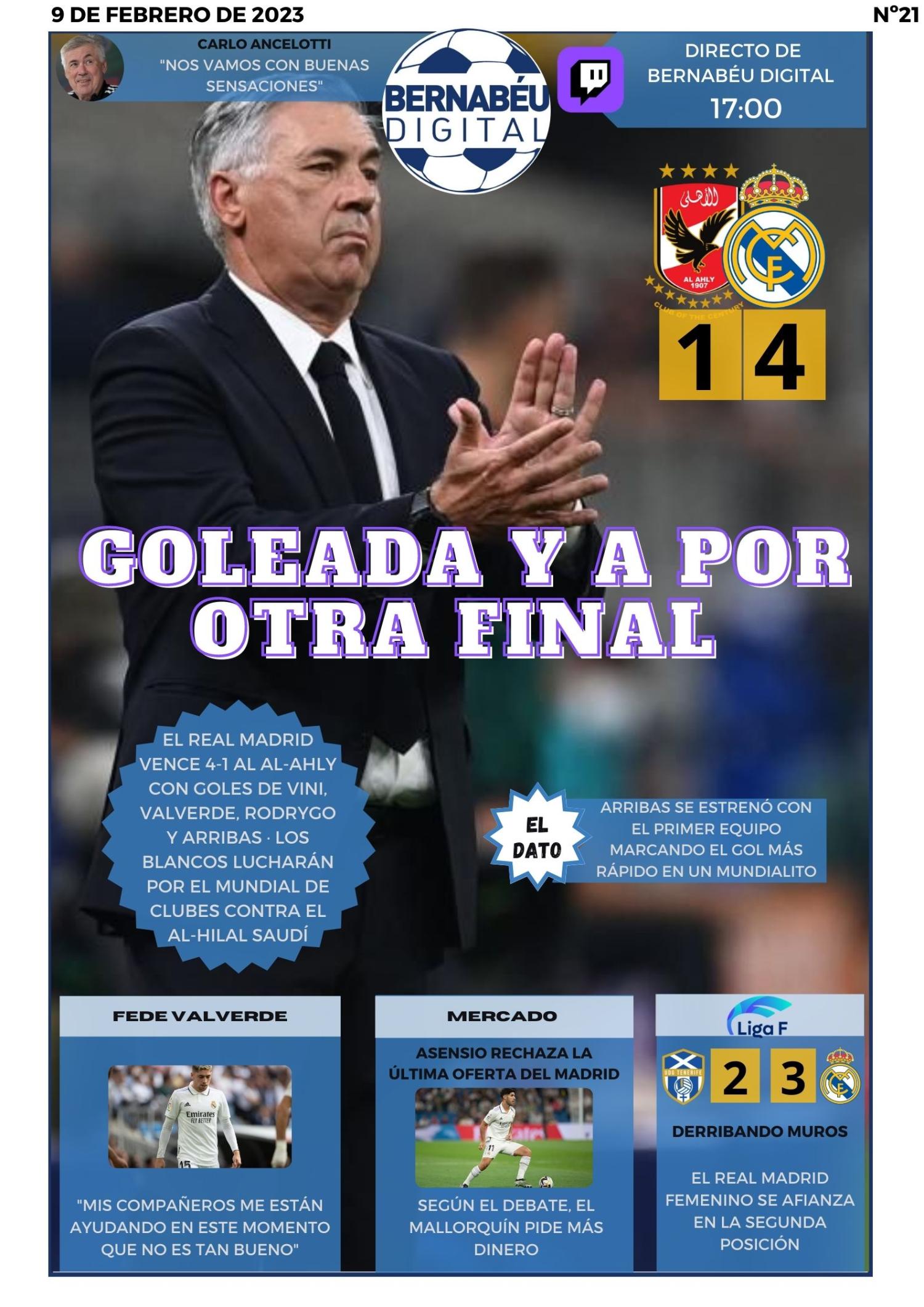 En nuestra nueva portada de este 9 de febrero de 2023 destacamos la victoria del Real Madrid frente al Al-Ahly en las semifinales del Mundial de Clubes.