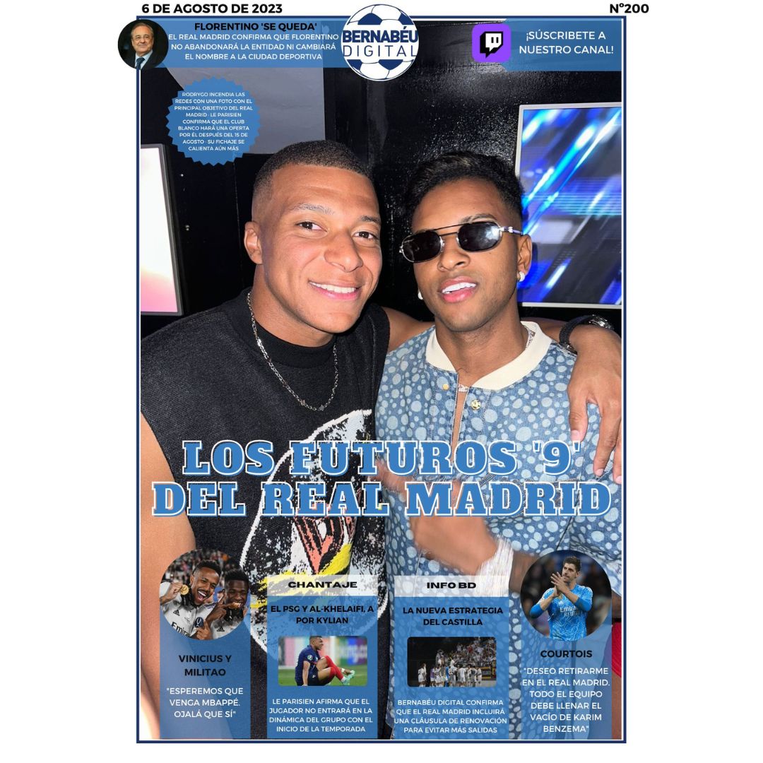En la portada de este domingo, en Bernabéu Digital abrimos con el futuro de Kylian Mbappé. Asimismo, destacamos el desmentido del Real Madrid sobre el posible adiós de Florentino Pérez, nuestra INFO BD sobre el Castilla, las declaraciones de Courtois y las palabras que Vinicius y Militao han dedicado al posible fichaje de Mbappé.