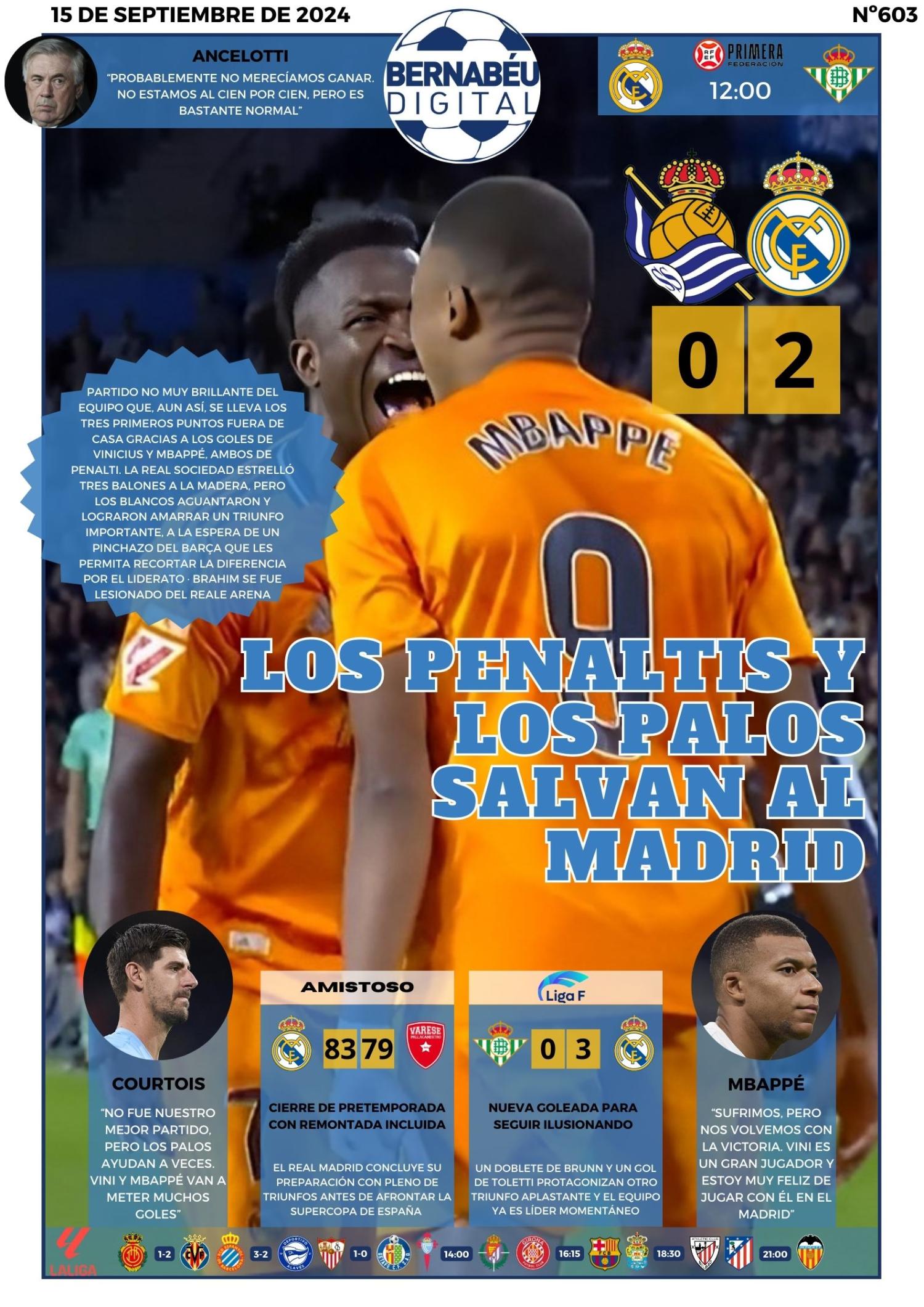 Este domingo 15 de septiembre de 2024, en Bernabéu Digital destacamos la victoria del Real Madrid ante la Real Sociedad, así como los triunfos del equipo femenino y de los hombres de Chus Mateo ante el Betis y el Varese, respectivamente.