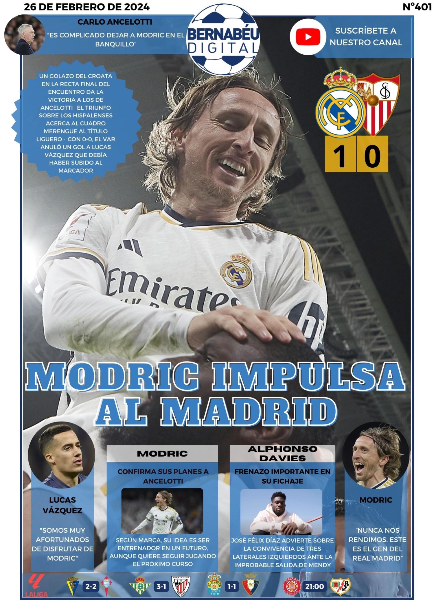 En la portada BD de este lunes destacamos la victoria del Real Madrid sobre el Sevilla, un encuentro marcado por el gran gol de Modric. Además, analizamos la última hora del futuro del croata y también del fichaje de Alphonso Davies.
