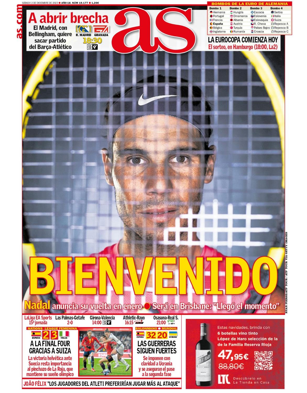 El diario As destaca en su portada la previa del partido del Real Madrid ante el Granada en un duelo que puede servir para aumentar distancia con el FC Barcelona o el Atlético de Madrid.