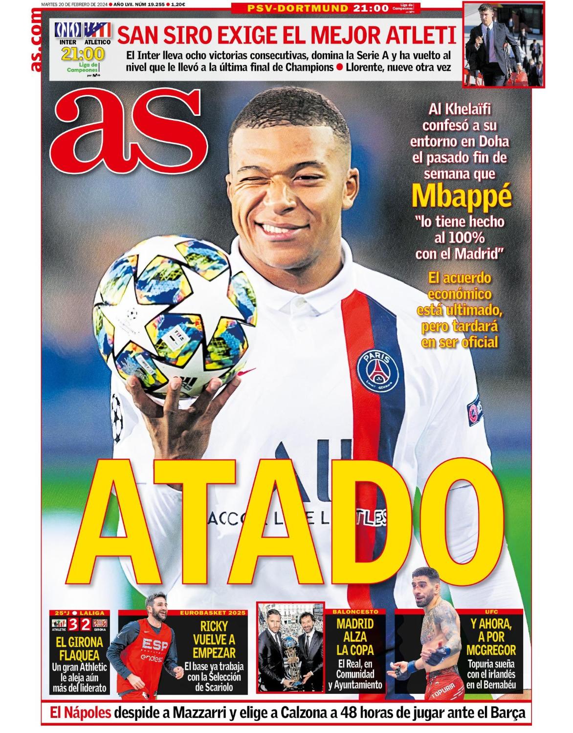 El diario As destaca el posible fichaje de Mbappé por el Real Madrid, el cual estaría ya prácticamente cerrado por el conjunto blanco.