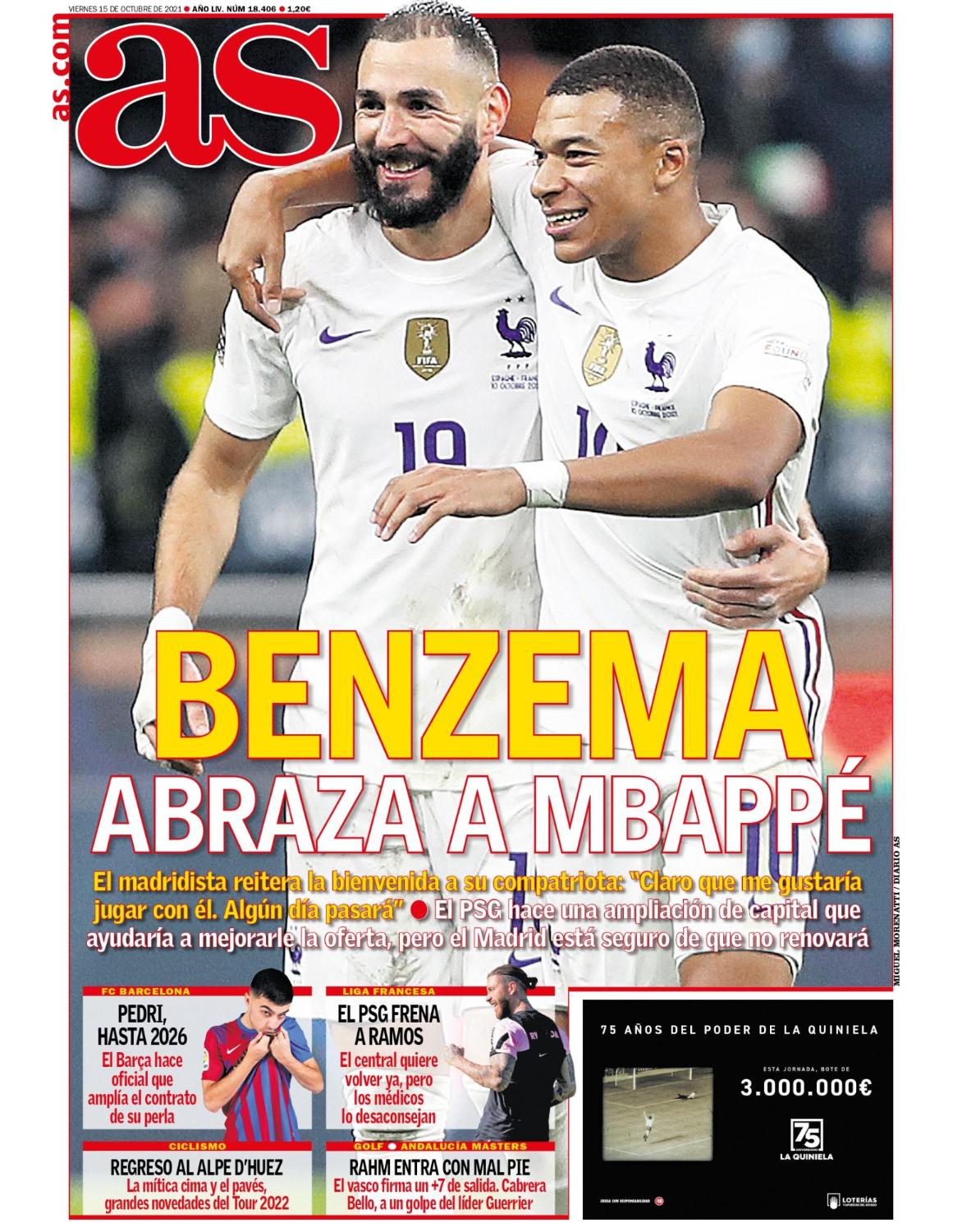 PORTADA | AS: "Benzema abraza a Mbappé"