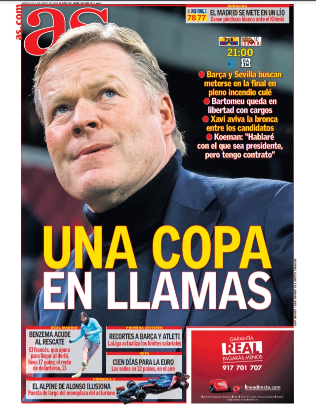 AS también abre con Karim Benzema. El francés es el máximo goleador del conjunto blanco con 17 goles, cuatro más que el resto de delanteros del Real Madrid juntos.
