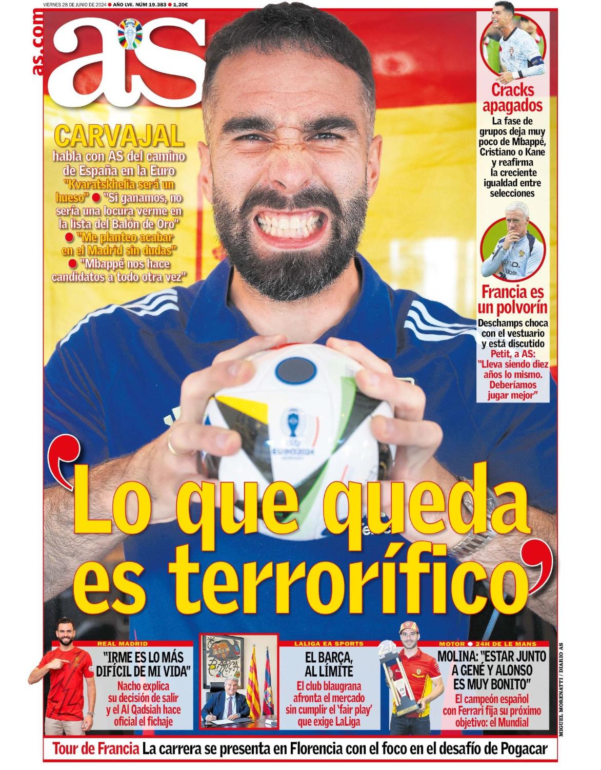 Este viernes 28 de junio de 2024, el diario as saca en portada una entrevista exclusiva con Dani Carvajal, quien analiza la fase final de la Eurocopa.