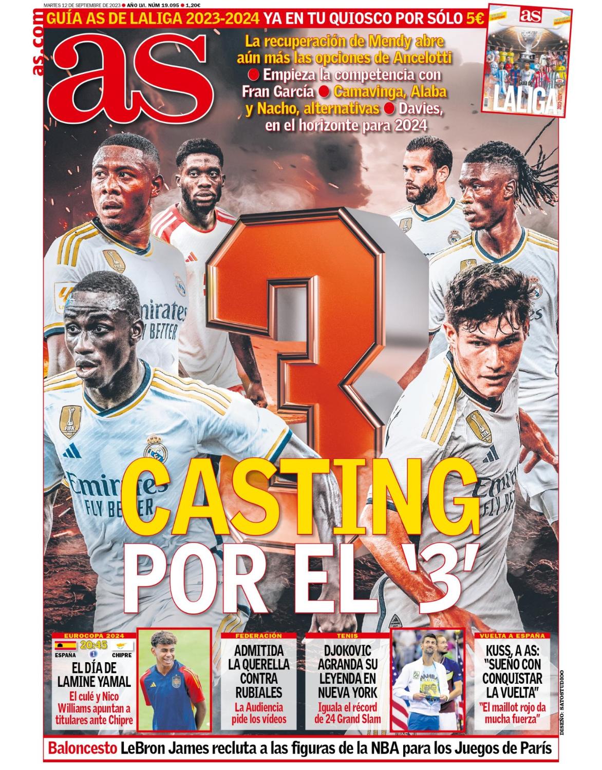 Este martes 12 de septiembre, el diario as saca en portada el "casting por el '3'" con Ferland Mendy y Fran García peleando por ser el lateral izquierdo titular; con Camavinga, Nacho y Alaba como alternativas y con Alphonso Davies con opción para 2024.