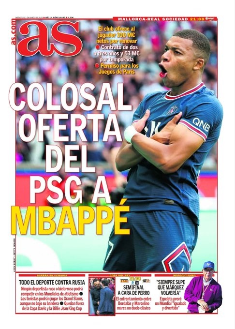 PORTADA | As: "Colosal oferta del PSG a Mbappé"