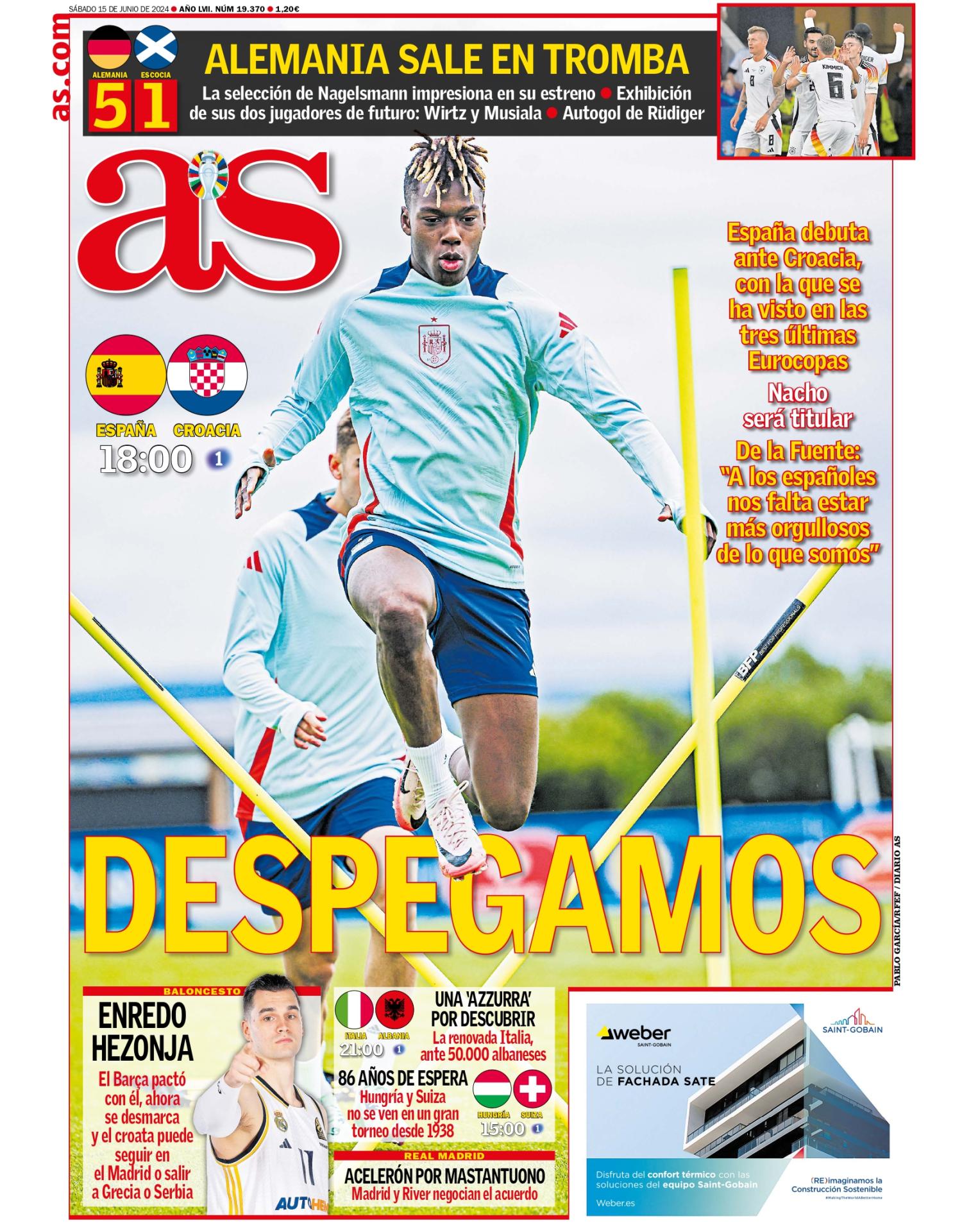 El diario AS destaca en su portada de hoy el "enredo" que existe con el futuro de Mario Hezonja, entre el Real Madrid y el Barcelona.