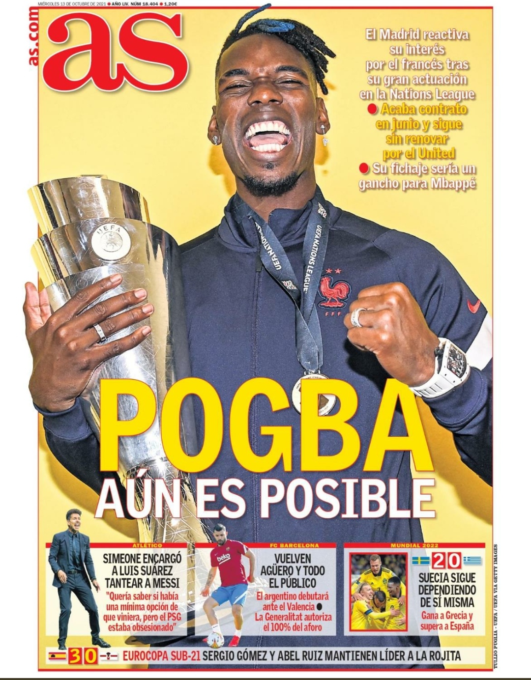 AS destaca el nuevo interés del Real Madrid en Paul Pogba. Su Nations League ha convencido y los blancos podrían intentar ficharle gratis a partir de enero, fecha en la que ya podrá negociar libremente con cualquier club al acabar contrato el próximo verano. Su llegada ayudaría en el fichaje de Kylian Mbappé.
