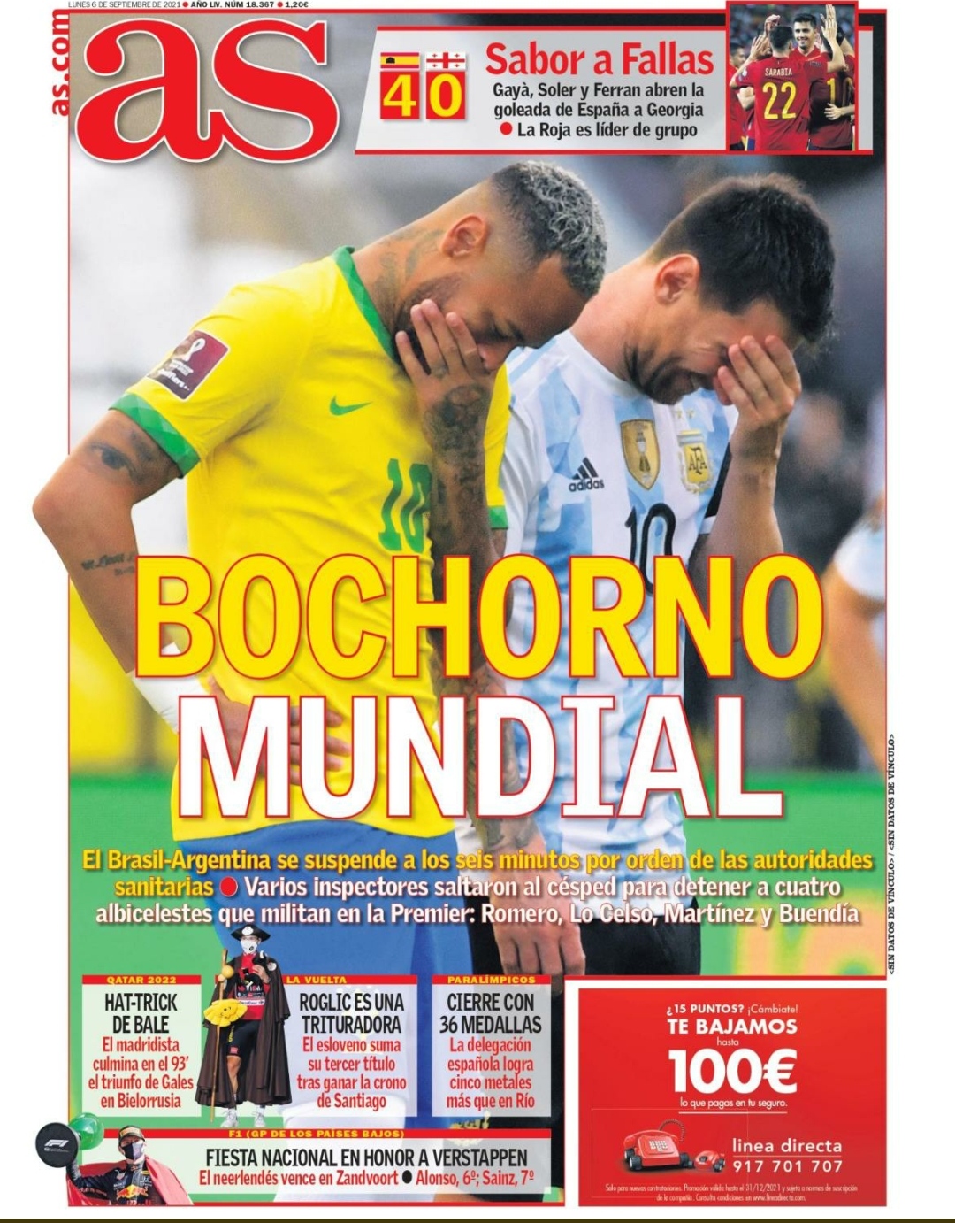 El triplete goleador de Gareth Bale con Gales también ha sido una de las noticias destacadas en la portada del diario AS. El jugador del Real Madrid lideró a los suyos en una nueva victoria, la cual le acerca a la repesca para el próximo Mundial de Catar.