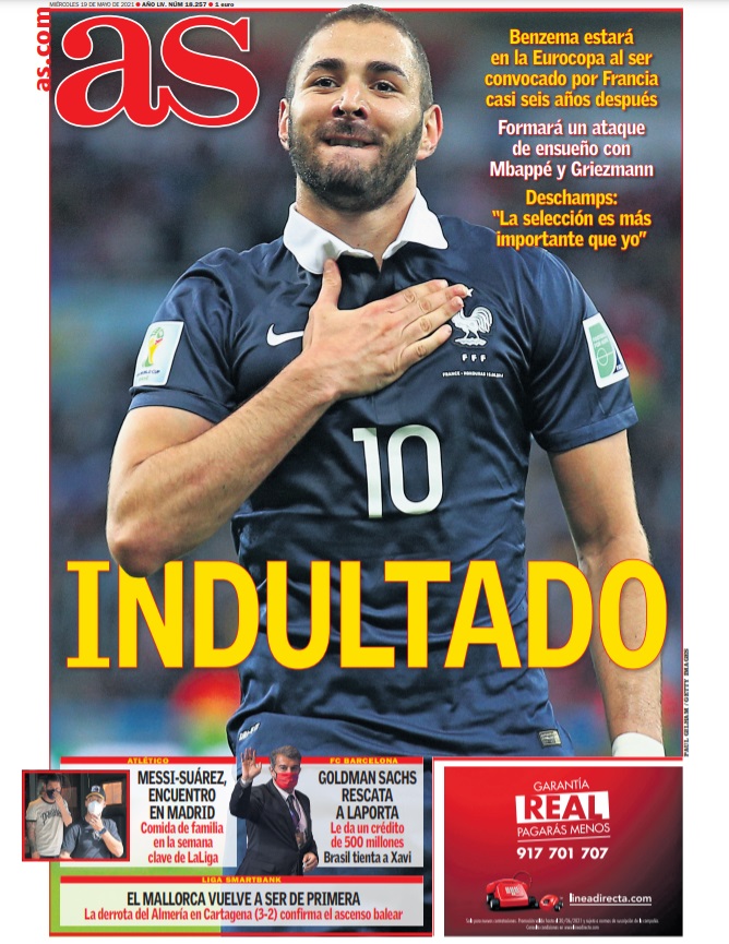 PORTADA | As: “Indultado. Benzema estará en la Eurocopa