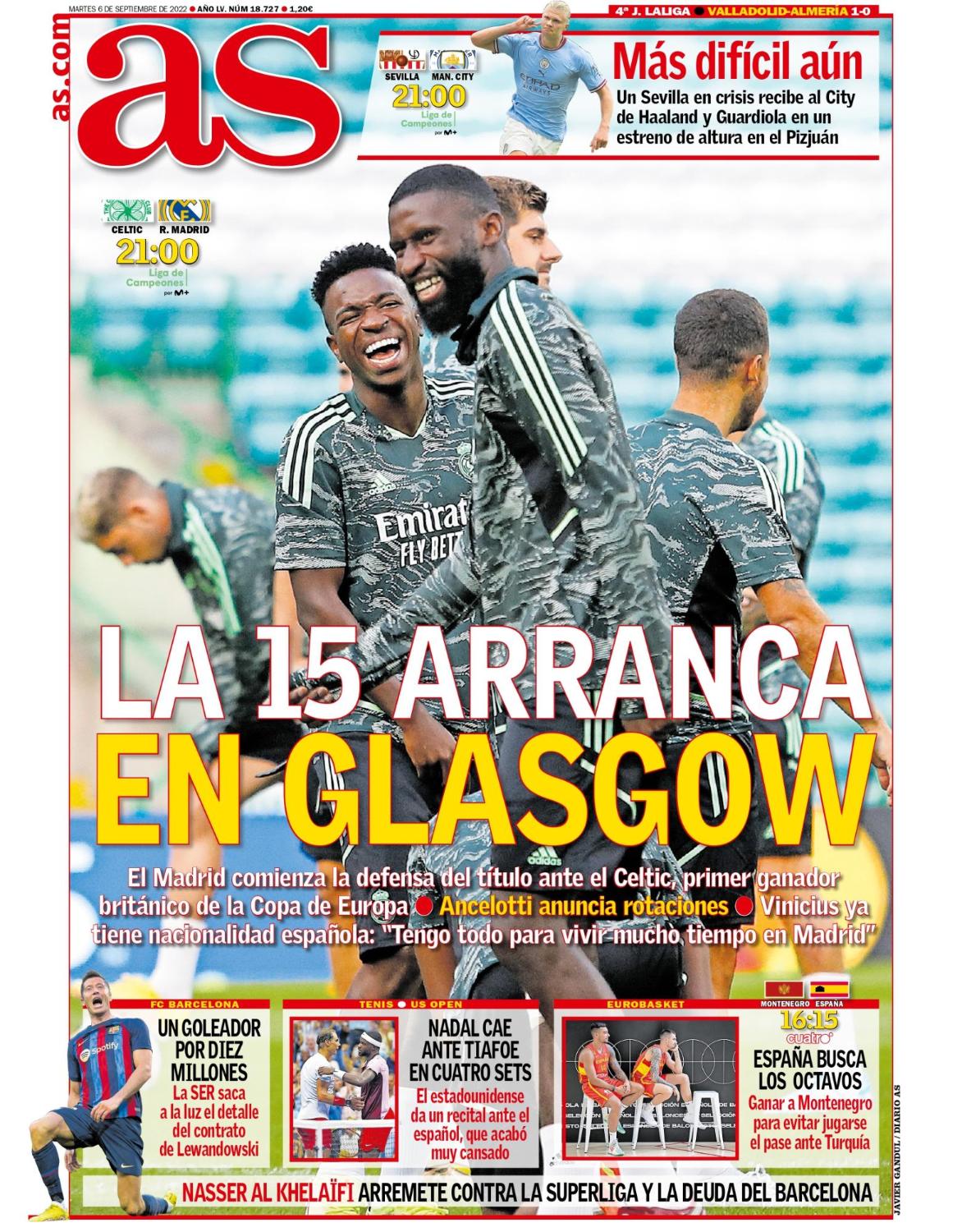 El diario AS saca este martes en portada el camino del Real Madrid hacia decimoquinta que arranca hoy ante el Celtic de Glasgow (21:00 hora española) con la primera jornada de la fase de grupos de la Champions League.