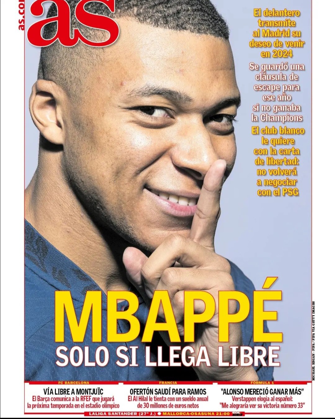 PORTADA | AS: "Mbappé, solo si llega libre"