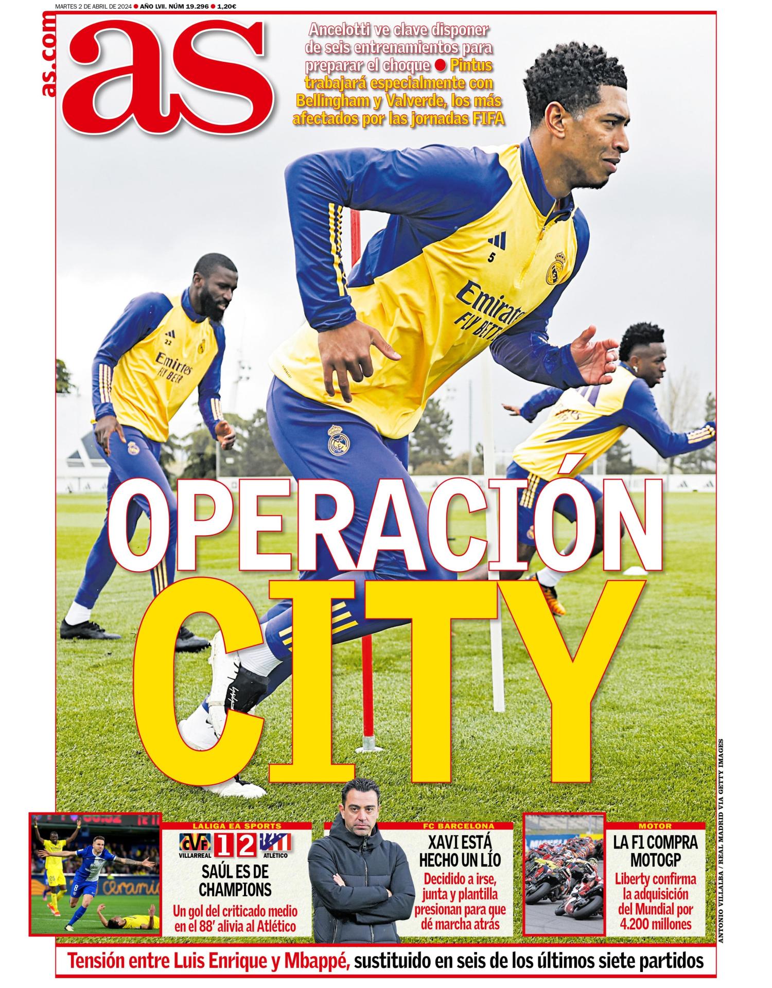 La portada del martes del diario AS viene protagonizada por la preparación del Real Madrid para el partido contra el Manchester City.