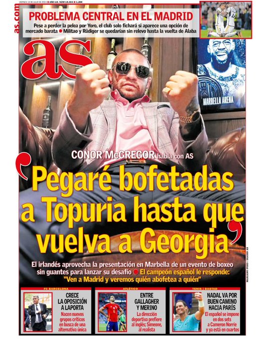 El diario AS abre su portada del viernes con una entrevista exclusiva a Conor McGregor.