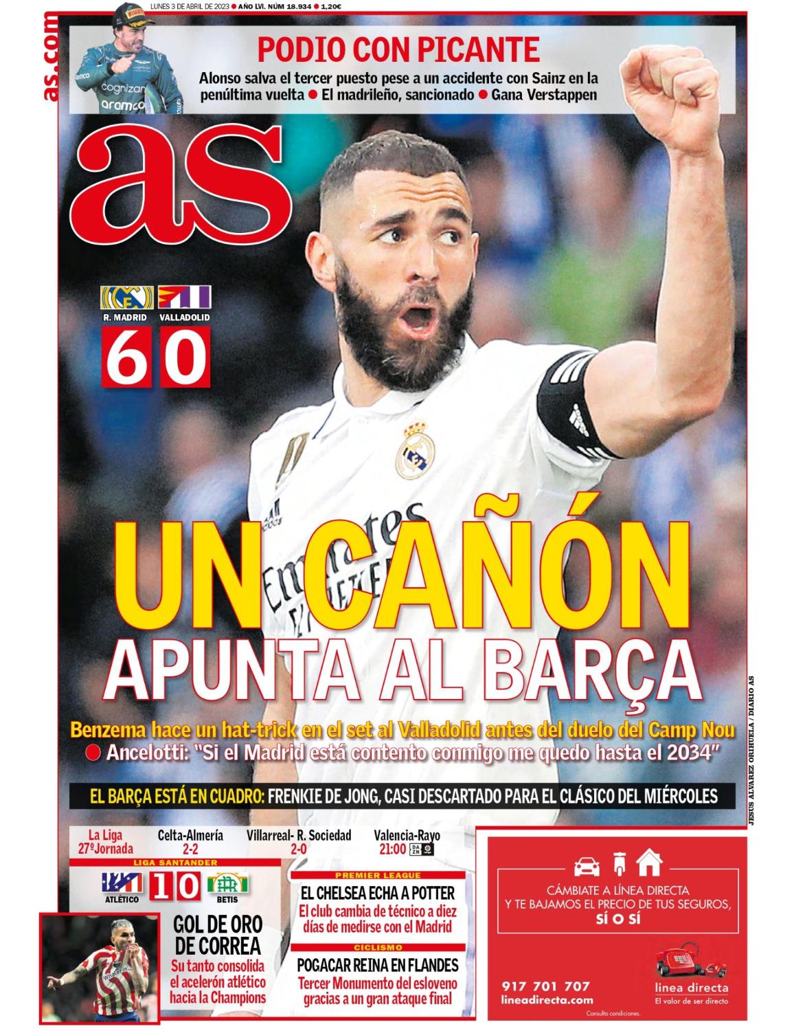 El diario AS destaca a Karim Benzema como arma del Real Madrid para medirse al Barcelona.