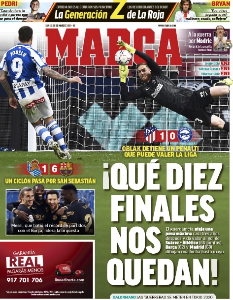 Marca abre la semana asegurando que el Real Madrid agotará todas las vías para recurrir la tarjeta amarilla de Modric en Balaídos. El penalti parado por Oblak a Joselu se lleva todos los focos. El portero del Atlético de Madrid ha detenido una pena máxima casi tres años después que puede ser muy importante para la resolución de LaLiga.