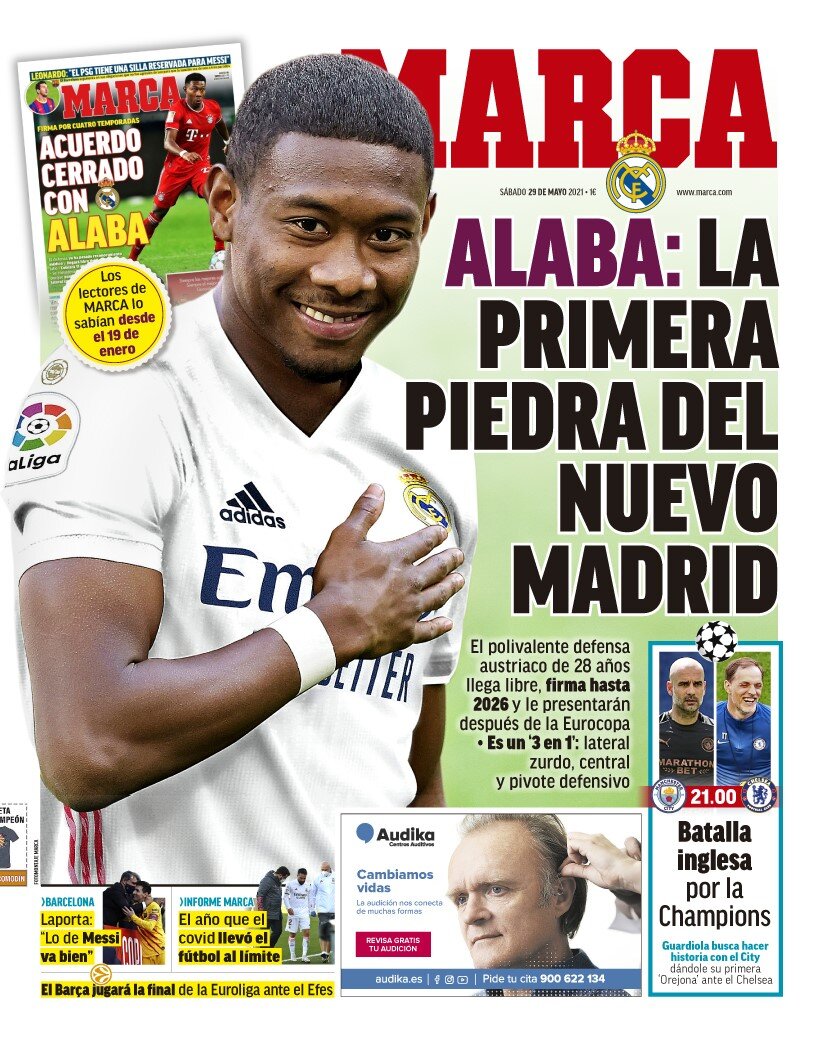 PORTADA - Marca: "Alaba, la primera piedra del nuevo Madrid"