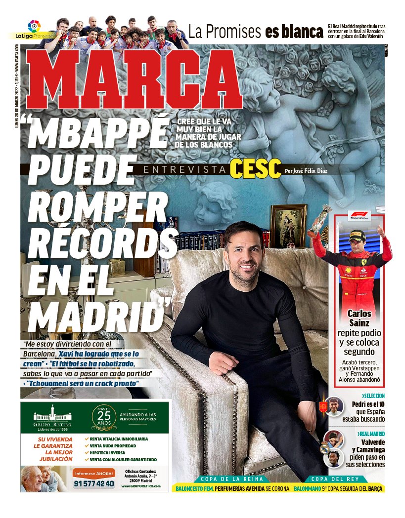PORTADA | Marca, Cesc Fábregas: "Mbappé pude romper récords en el Madrid"