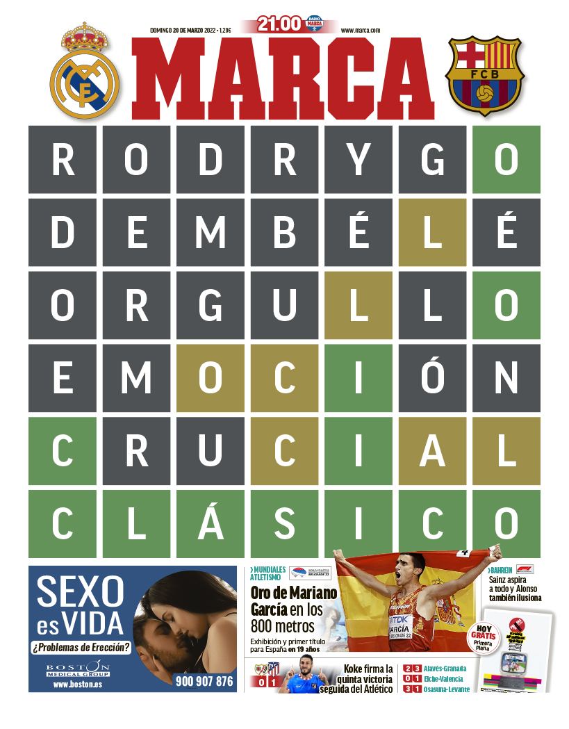 El diario Marca menciona al clásico entre Real Madrid y Fútbol Club Barcelona como "crucial".