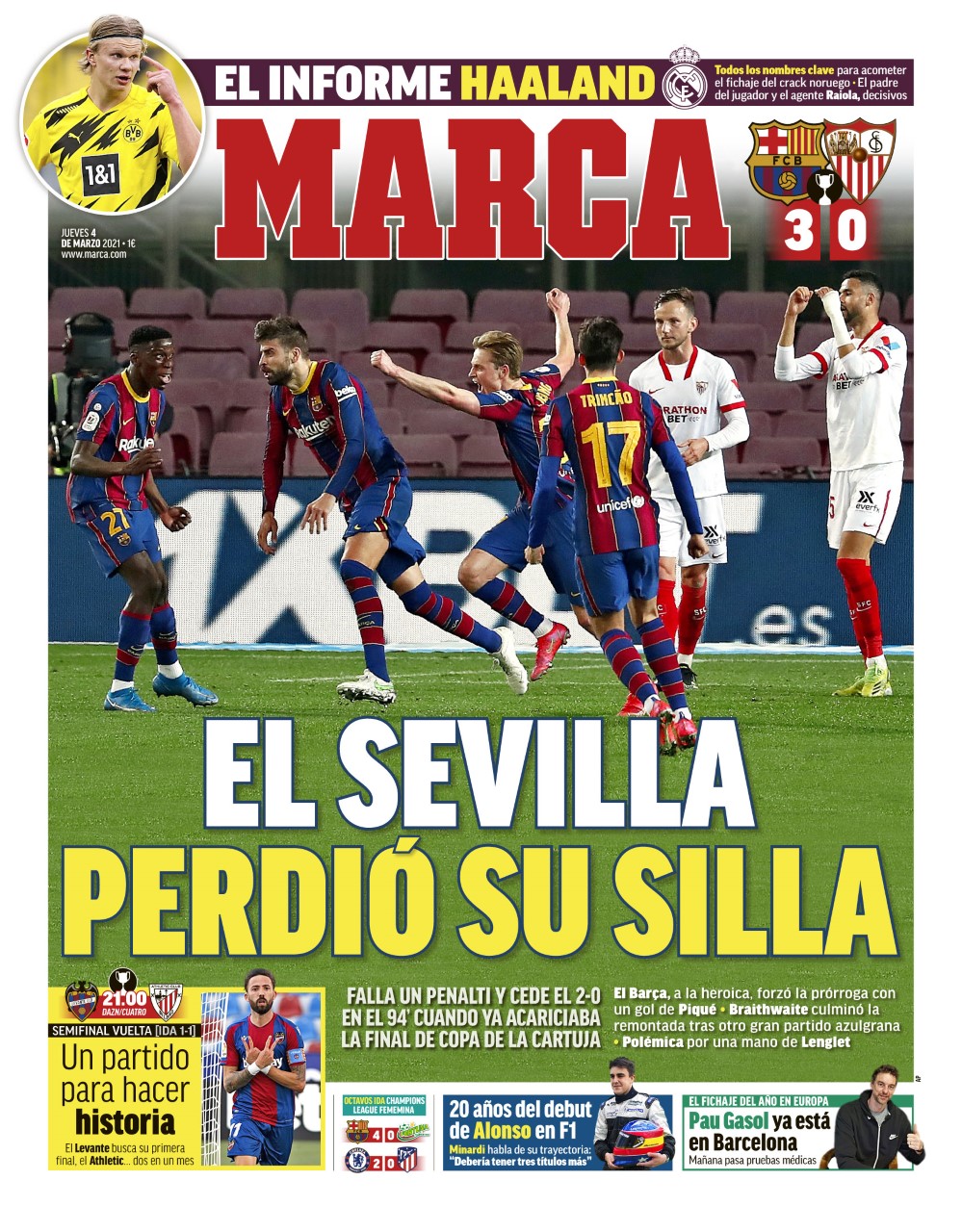 Marca abre en la parte superior de su portada con los pasos a seguir del Real Madrid para fichar al ariete noruego. Convencer a su representante y a su padre se antojan dos tareas claves para la operación.