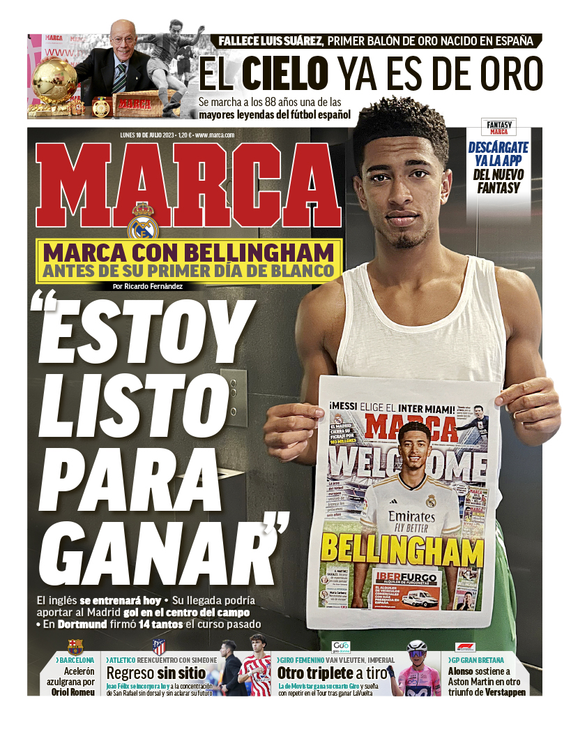 El diario Marca ha entrevistado a Jude Bellingham y titulan su portada de hoy con una de sus declaraciones: "Estoy listo para ganar". Hoy vuelve a los entrenamientos.