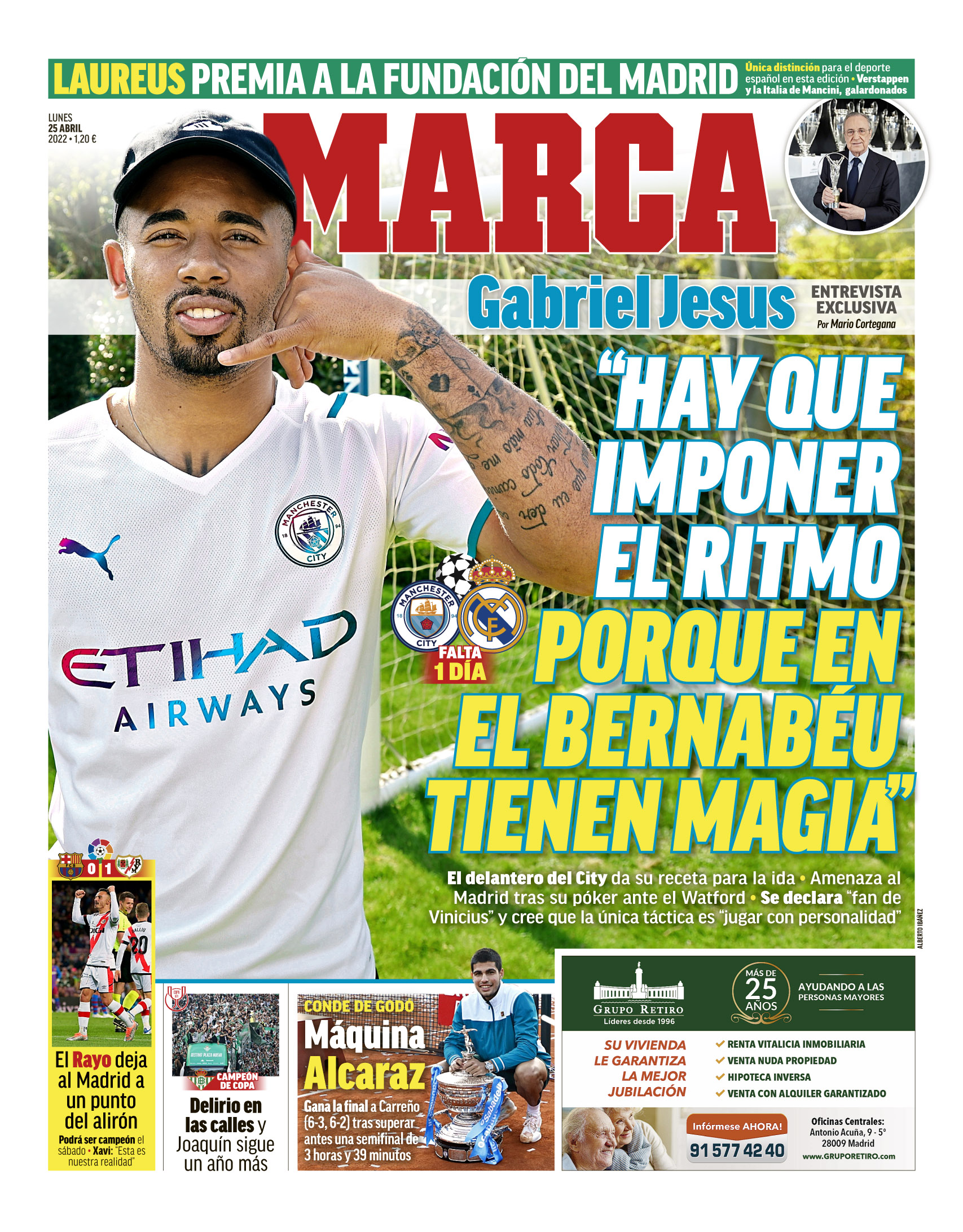 PORTADA | Marca entrevista a Gabriel Jesús: "En el Bernabéu tienen magia"