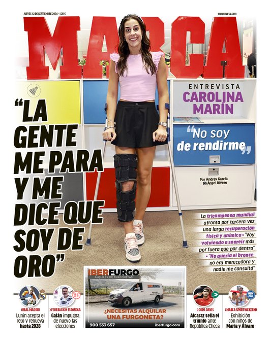 En su edición de este jueves, el diario Marca abre portada con Carolina Marín y con la inminente renovación de Andriy Lunin con el Real Madrid.