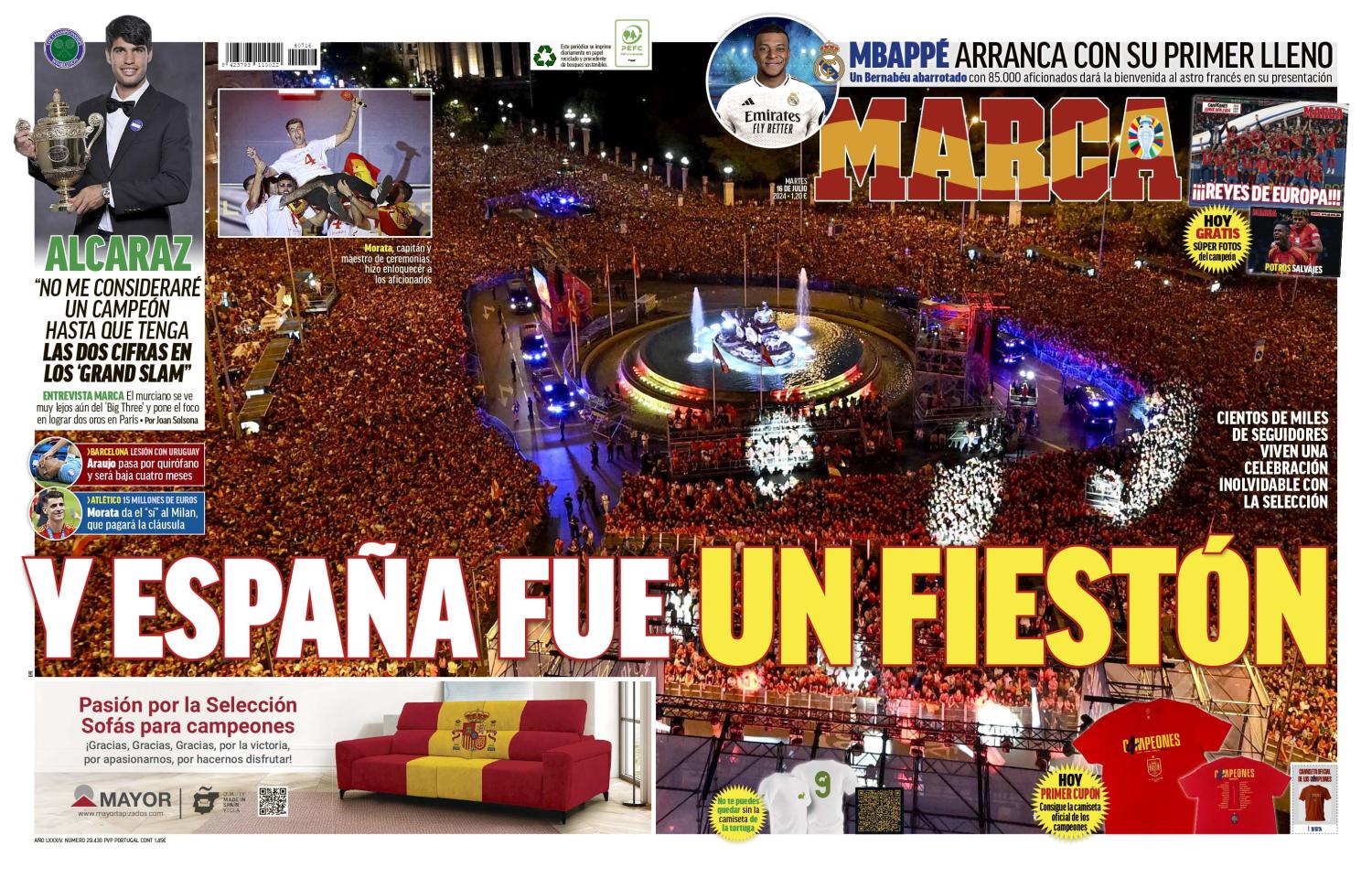 Marca abre con la presentación de Kylian Mbappé en el Santiago Bernabéu y, por supuesto, con el fiestón de la selección española en Cibeles tras ganar la Eurocopa.