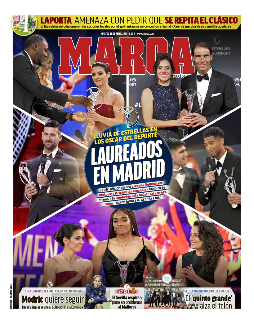 En su edición de este martes, el diario Marca abre con los Premios Laureus y con la decisión de Luka Modric de seguir en el Real Madrid.