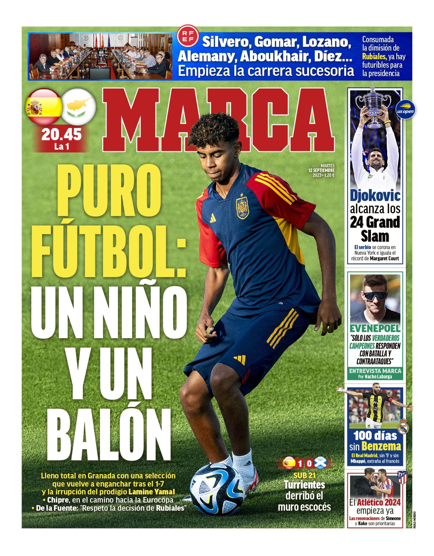 En su edición de este martes, el diario Marca abre portada con el España - Chipre centrándose en la figura de Lamine Yamal.