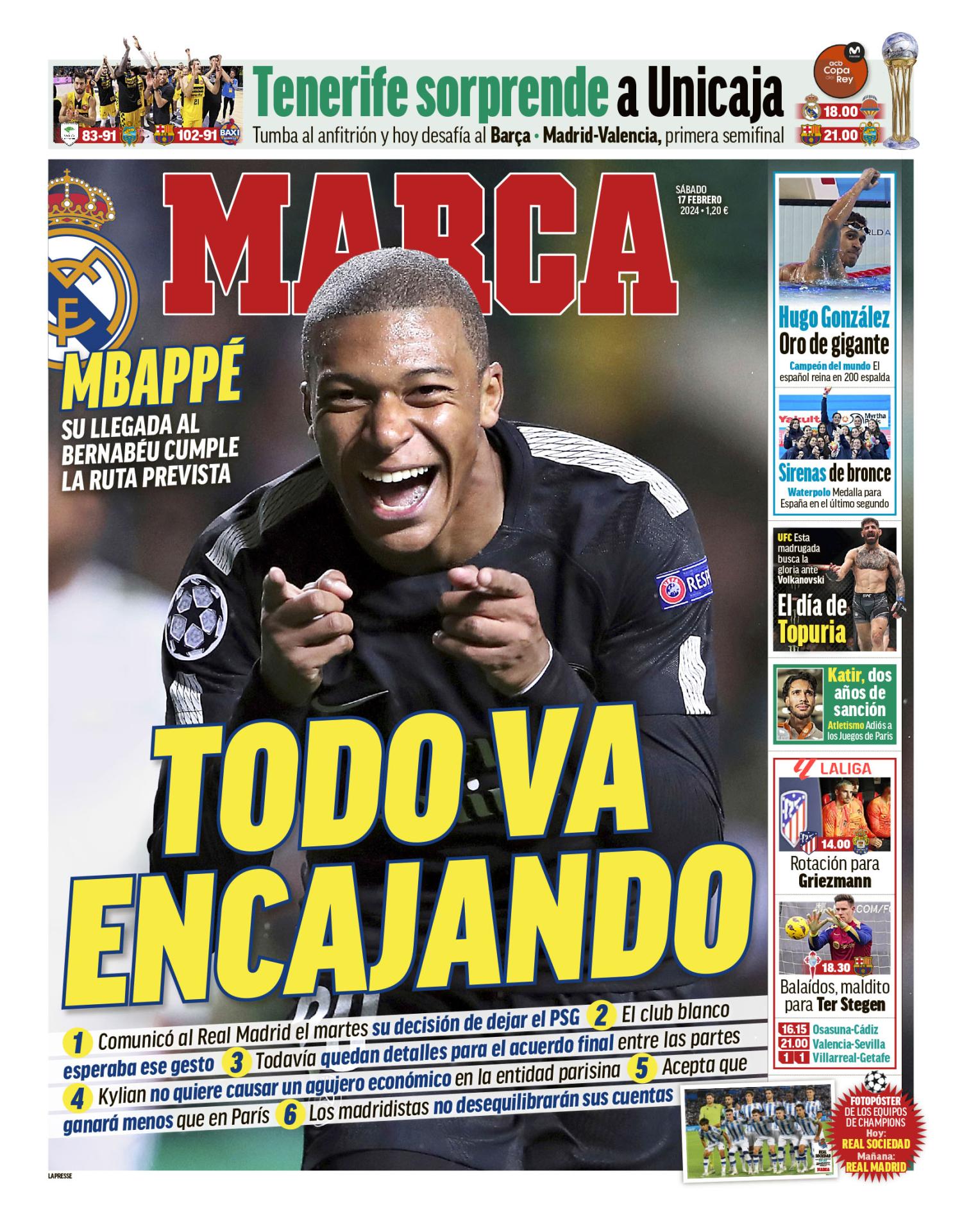 El diario Marca presenta en su portada a Mbappé y un fichaje que "va encajando".