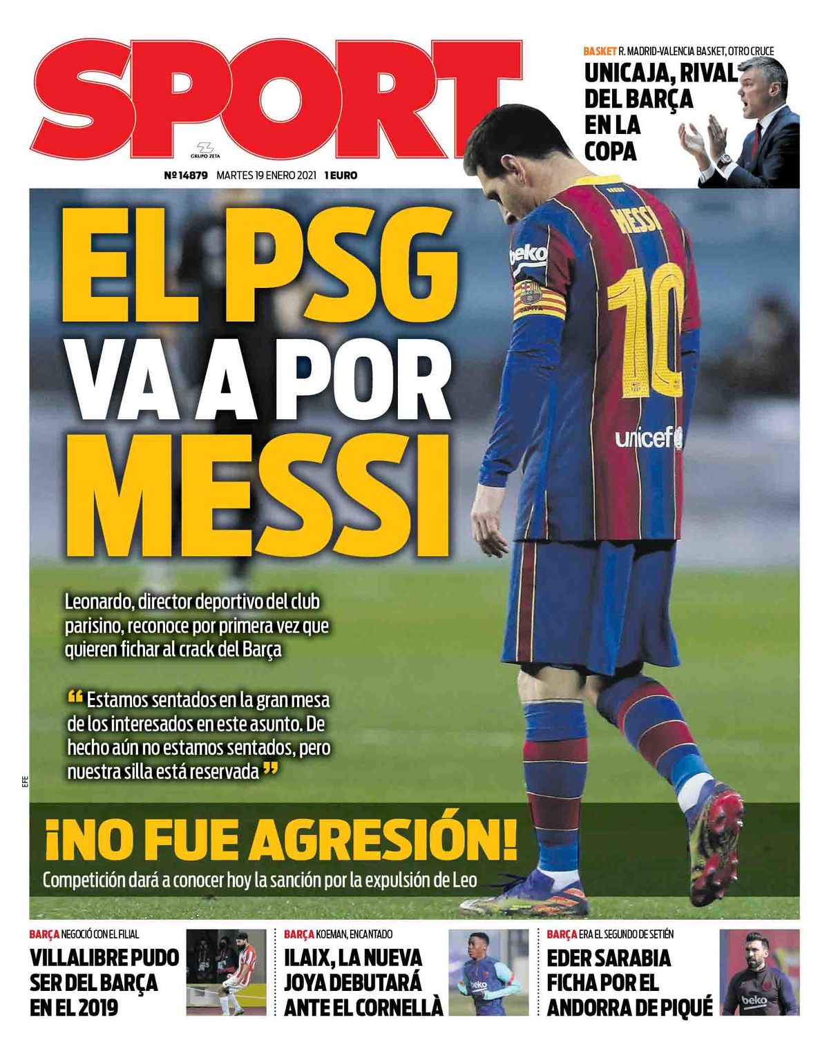 El diario Sport también destaca hoy en portada las últimas declaraciones de Leonardo, director deportivo del Paris Saint-Germain, que no cerró la puerta al posible fichaje de Leo Messi de cara a la próxima temporada.