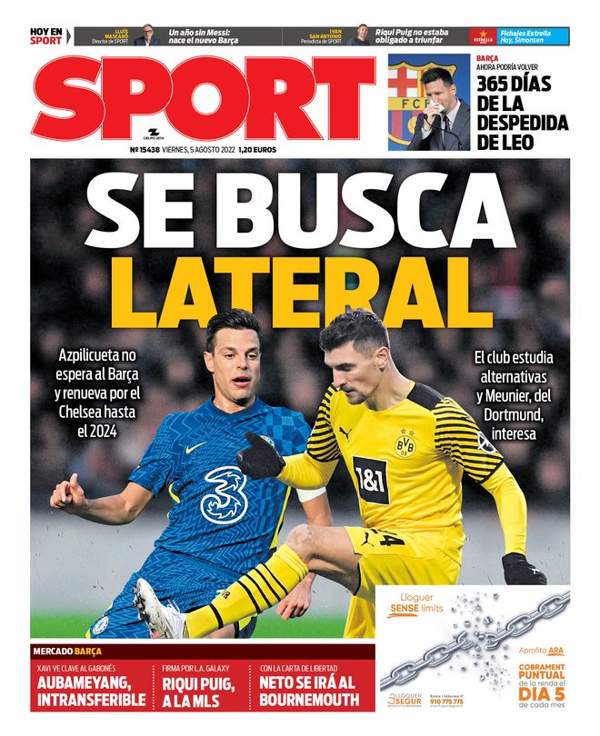 PORTADA | Sport: "Se busca lateral"