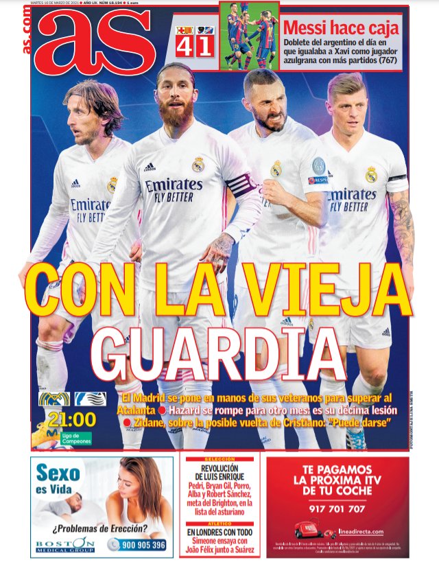 Las portadas destacan la previa del Real Madrid - Celta