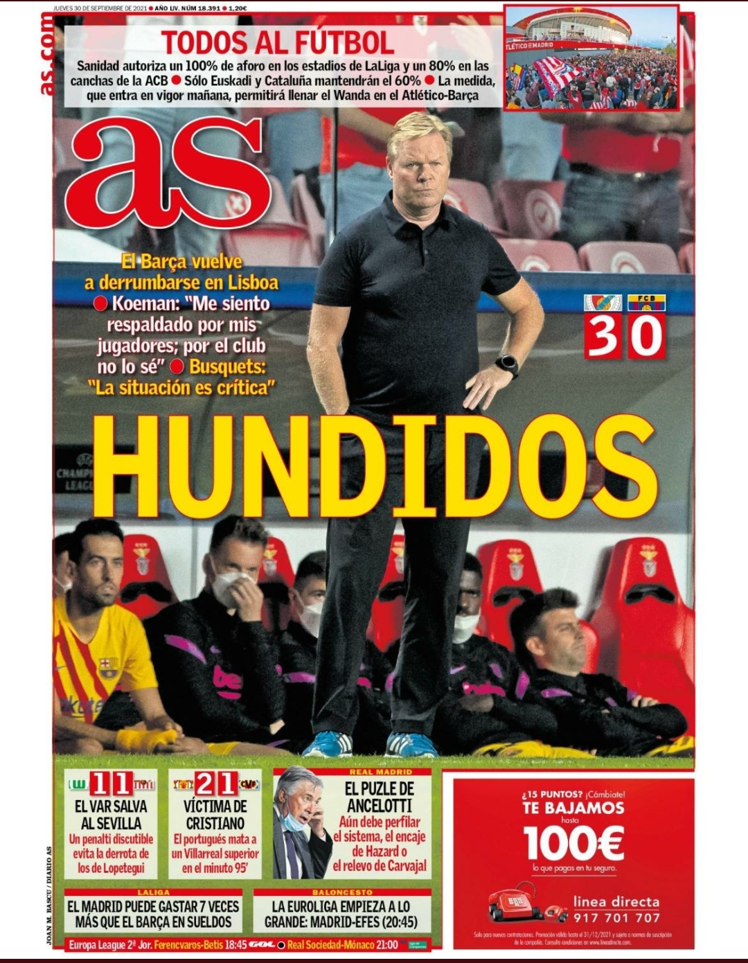 AS destaca los pitos del Santiago Bernabéu al Real Madrid en su portada