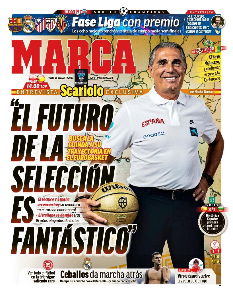 Scariolo y la marcha atrás de Ceballos, en la portada de Marca