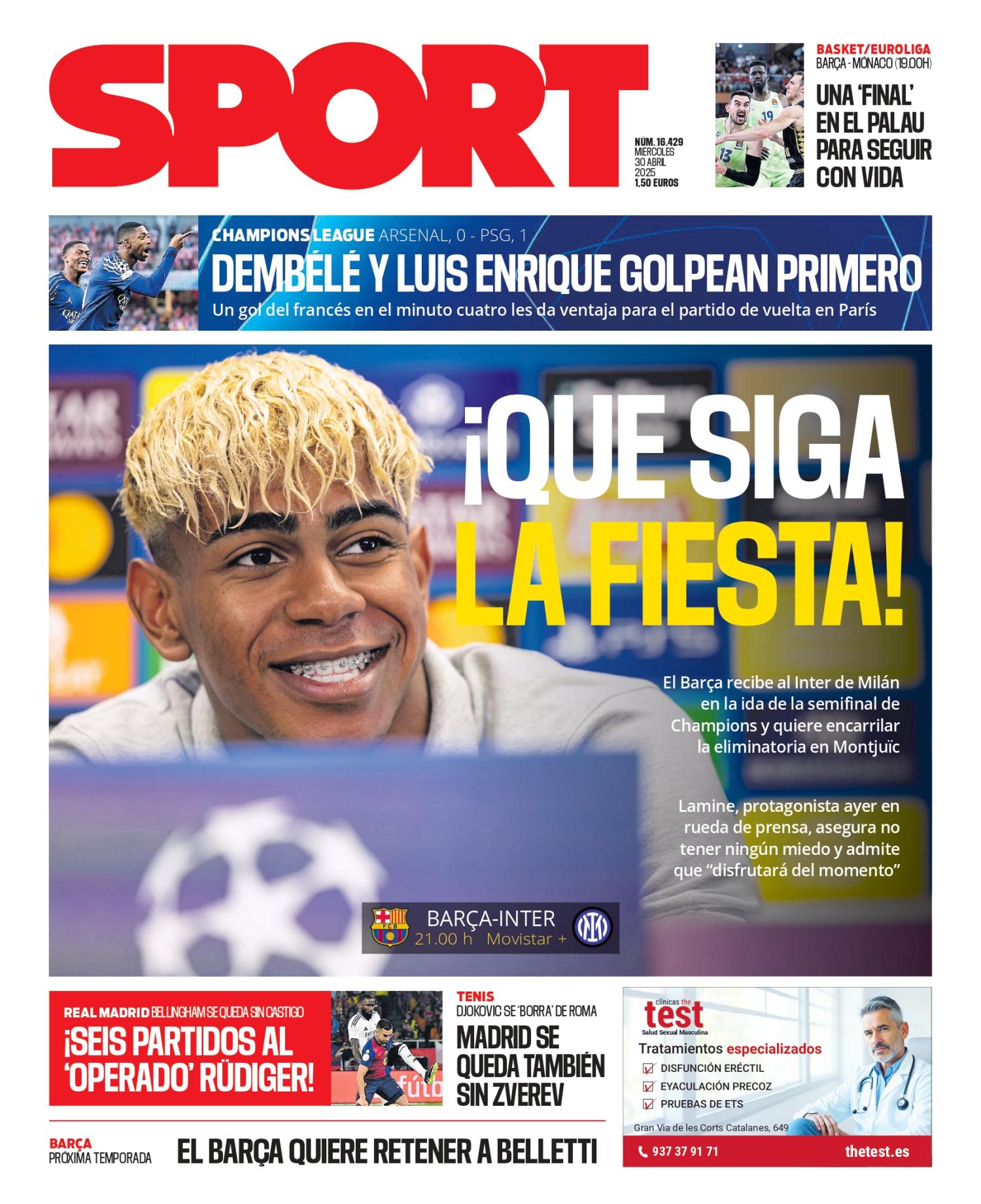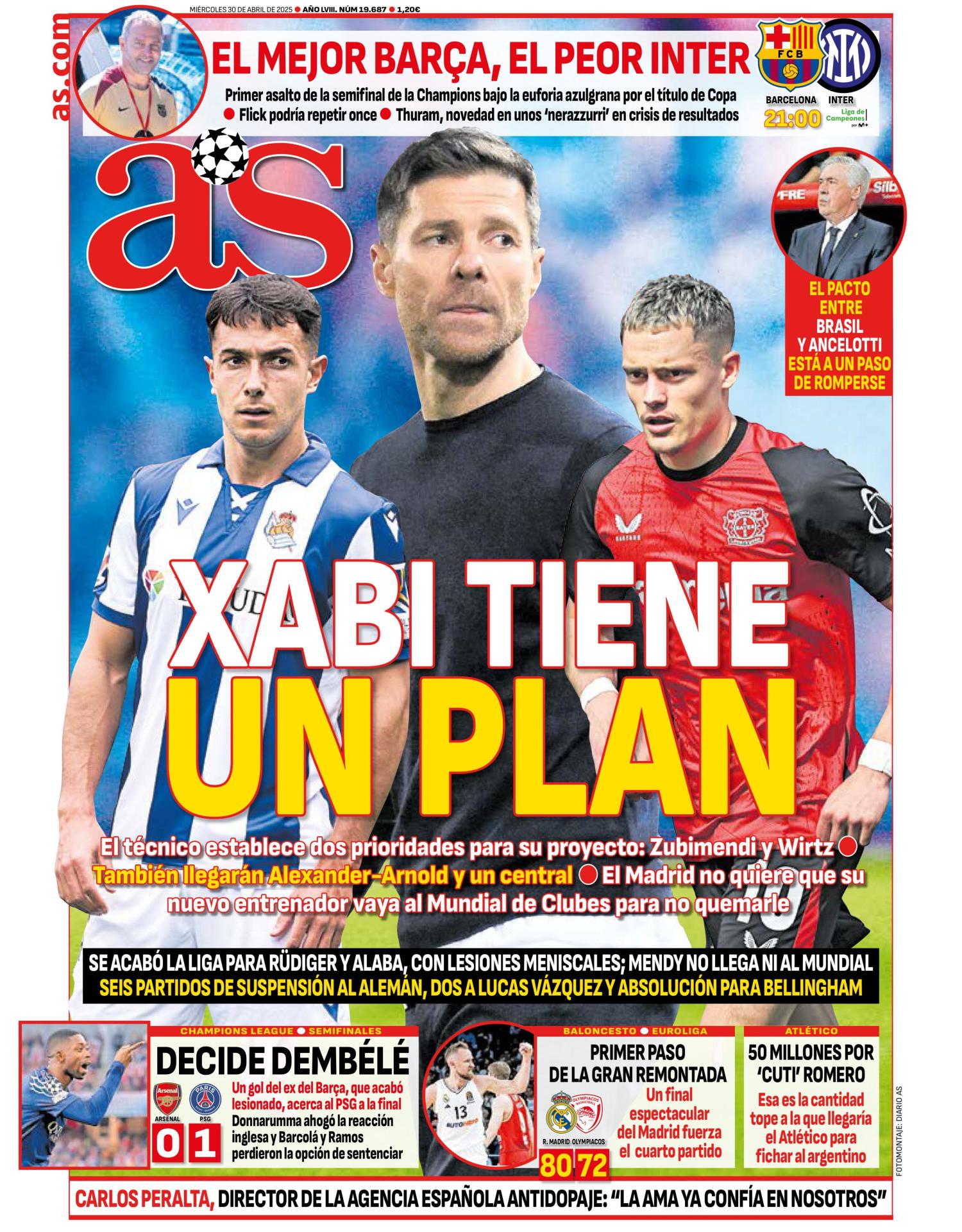 Xabi Alonso, Florian Wirtz, Martín Zubimendi, Antonio Rüdiger y Lamine Yamal, protagonistas en las portadas deportivas de este miércoles 30 de abril de 2025.