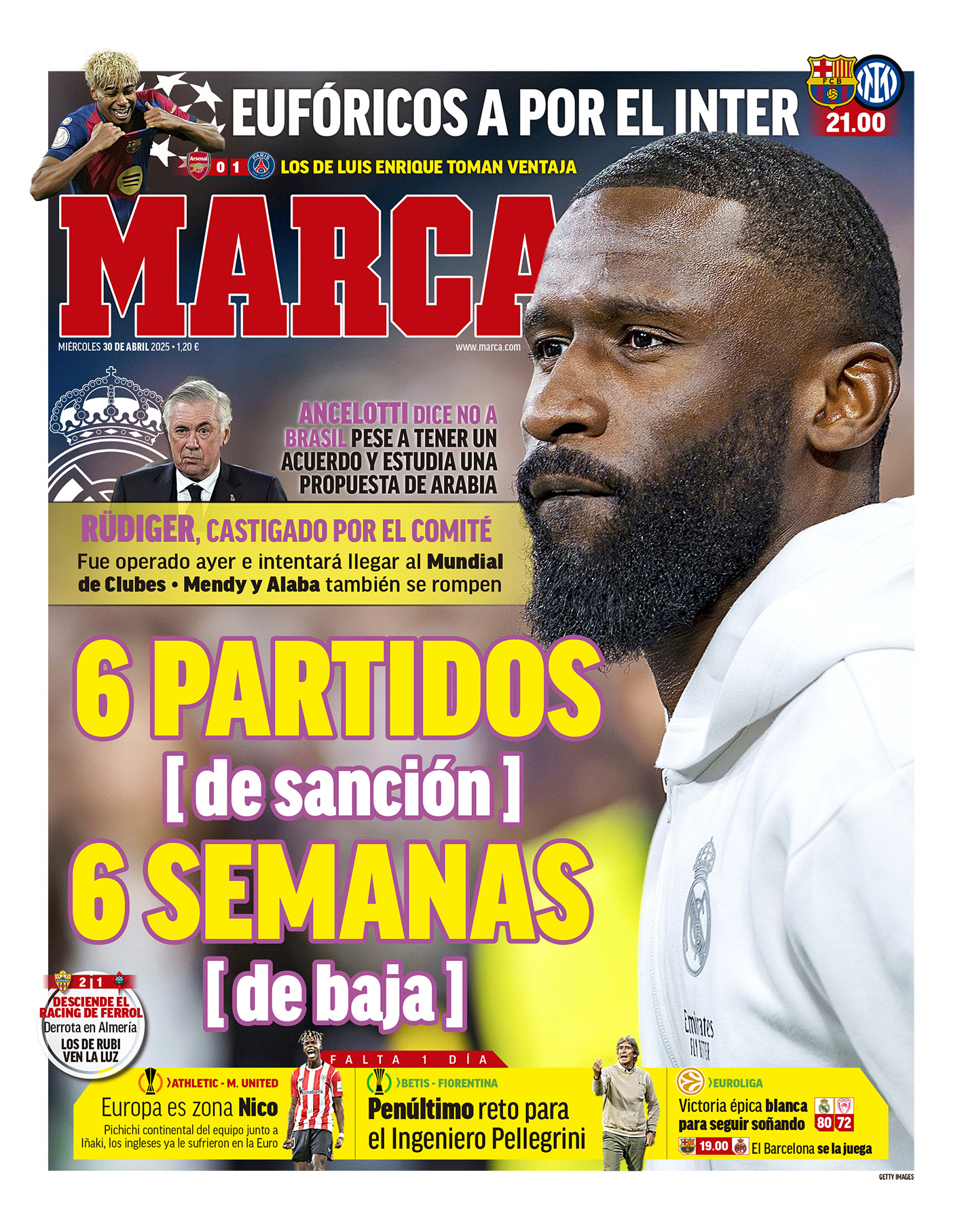 Xabi Alonso y Rüdiger ocupan las portadas del 30 de abril de 2025