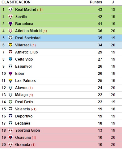 El Atlético de Madrid no pudo pasar del 0-0 en Mendizorroza, y esto le aleja más de la liga si el Madrid puntúa mañana, Así está la clasificación en estos momentos a falta de que el Madrid juegue dos partidos.