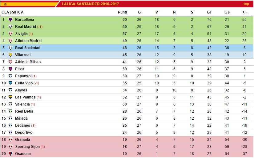 CLASIFICACIÓN - Un nuevo pinchazo del Sevilla lo aleja del título