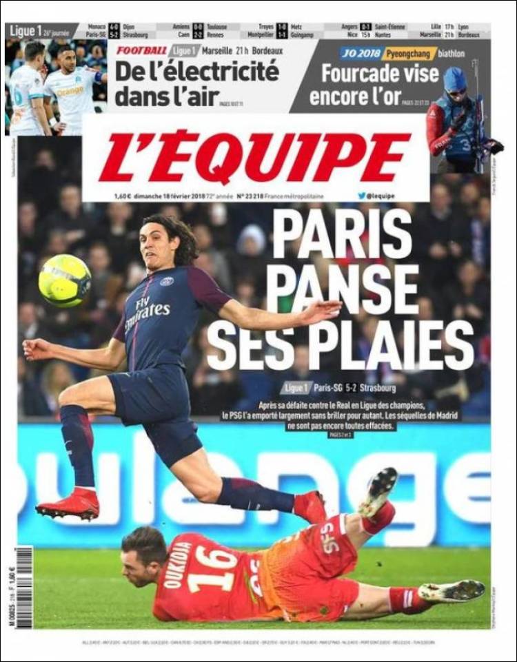 "El PSG reacciona", titula Le Parisien y "París cura sus heridas" sale este domingo L'Equipe. El equipo de Unai Emery lavó su imagen este sábado en la contundente victoria ante el Estrasburgo (5-2) y tanto los jugadores como la prensa sintió que la eliminatoria del Real Madrid estaba más viva que nunca y que aún podrían lograr la remontada.