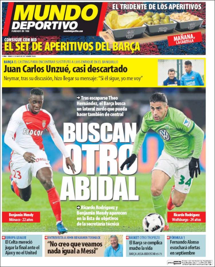 Según informa Mundo Deportivo en su portada de hoy, el FC Barcelona ya tiene a dos nuevos pretendientes para ocupar el lateral izquierdo tras el fichaje de Theo Hernández por el Real Madrid. Se trata de Mendy, jugador del Mónaco, y Ricardo Rodríguez, del Wolfsburgo, con quiénes pretenden conseguir al "nuevo Abidal".