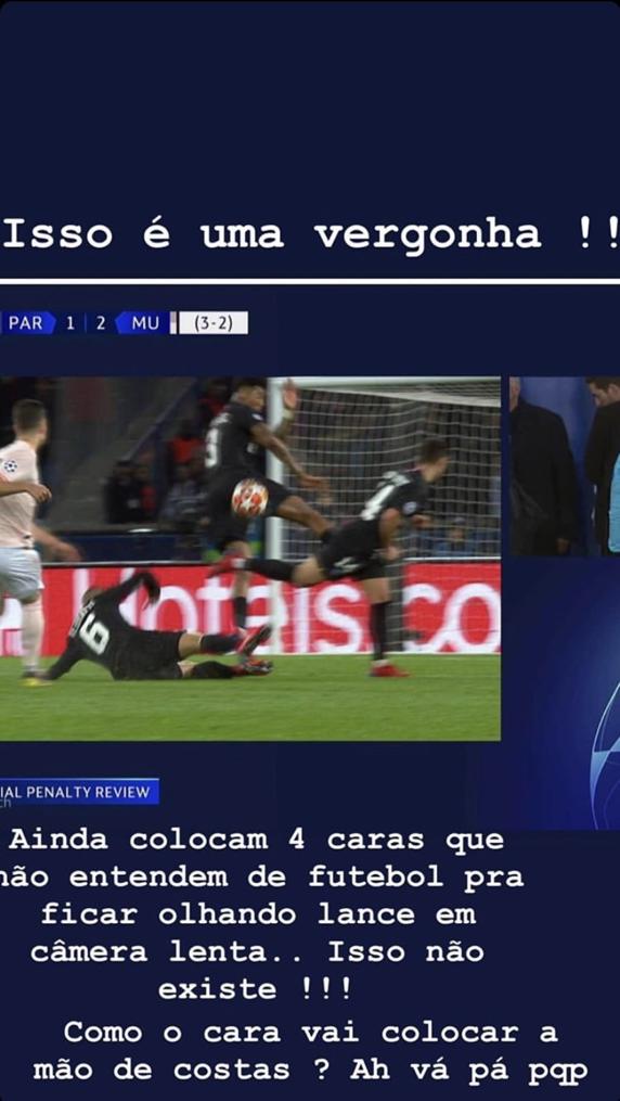 Neymar ha mostrado en redes sociales su enfado por el penalti que ha dejado al PSG fuera de la Champions en octavos de final por tercera temporada consecutiva. "¡Es una vergüenza! Ponen a cuatro hombres que no entienden de fútbol para que vean el lanzamiento -en cámara lenta- y eso no existe. ¿Cómo va a poner la mano en la espalda?", comentó el jugador brasileño.